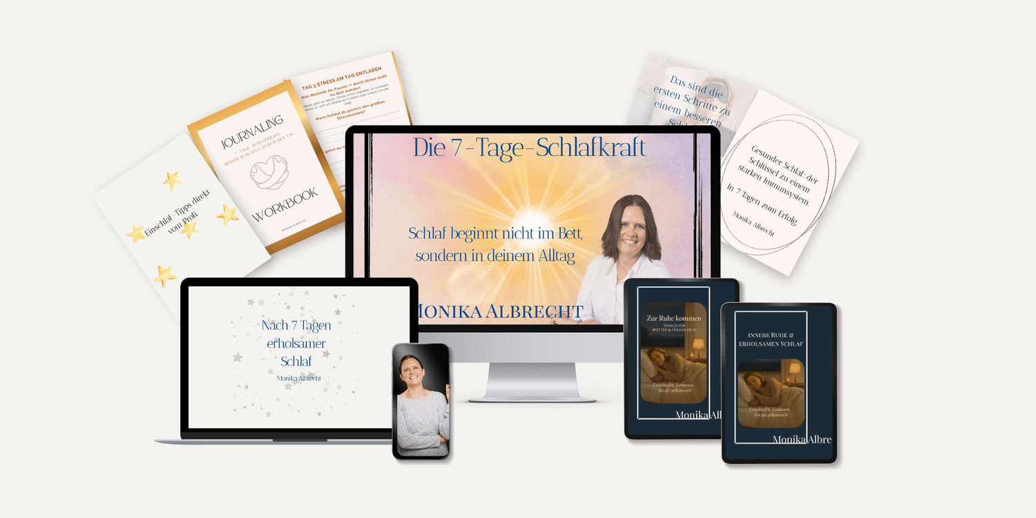 7-Tage-Schlafkraft ist deine Schritt-für-Schritt-Anleitung, um in nur einer Woche mit einfachen Impulsen zur Ruhe zu kommen, besser zu schlafen und neue Energie für deinen Alltag zu gewinnen – damit dein Schlaf endlich wieder FÜR DICH arbeitet!